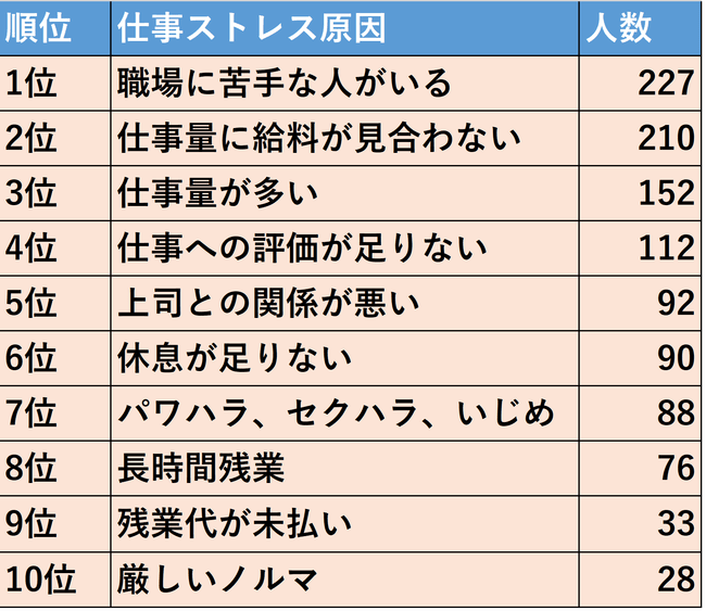 ちなみに仕事によるストレスで一番多いのは、人間関係です。