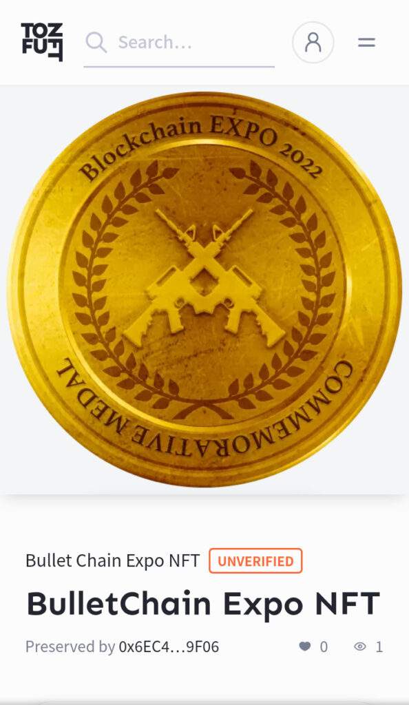 Bullet Chainさんは銃撃対戦のNFTゲームを今後リリースするらしく、QRコードを読み取りツイッタ―をフォロー&いいね、対象ツイートをRTの条件で記念NFTをもらってきました。