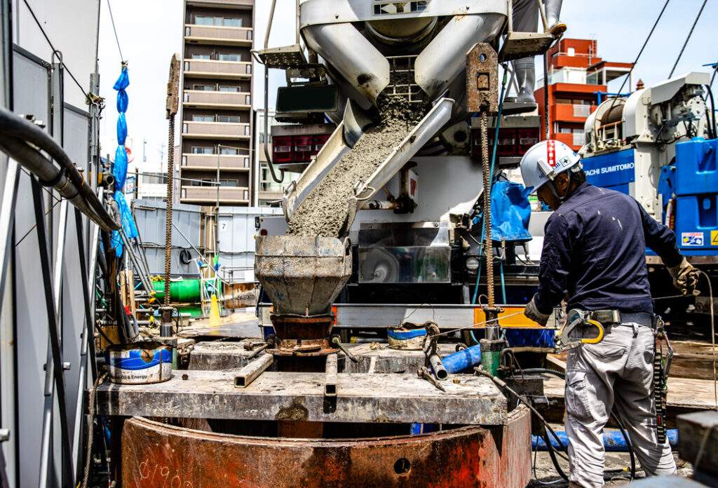 重量のある建物を支えるための要になる工事となるので、失敗は許されない。