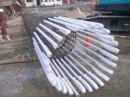場所打ち杭工法では、鉄筋カゴを入れて施工します。