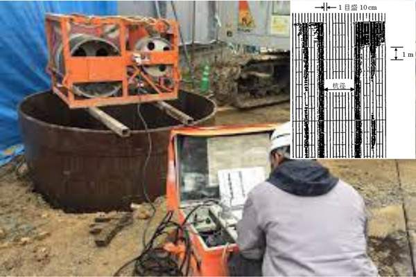 擁壁測定は、超音波で掘削孔、深さの状況を記録するために行います。