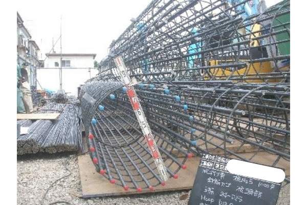 鉄筋の本数に相違がないか、杭の長さが構造図通りか等を確認。