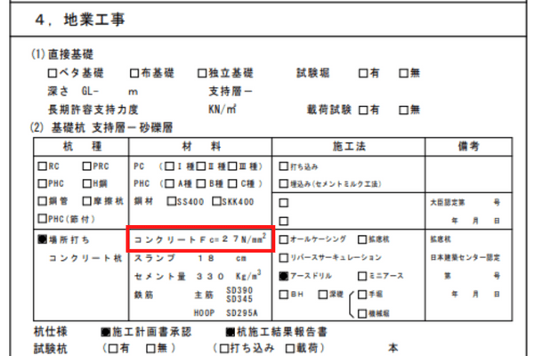 コンクリート強度を間違えないように構造図を確認しておきましょう。