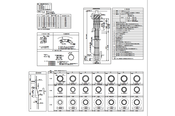 主筋が何本なのか、径はいくつなのか、拡底・拡頭の形状等は杭ごとに書いてあります。