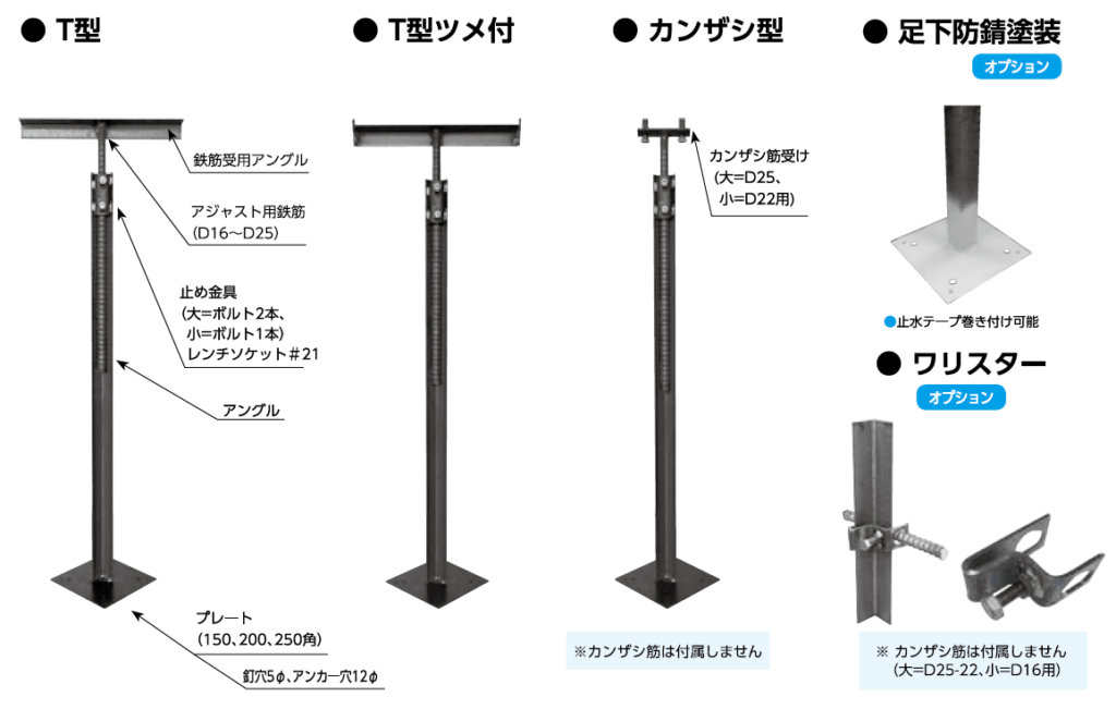 鉄筋屋さんT型、T型ツメ付、カンザシ型の3種類のどれ使うか聞いてみよう!