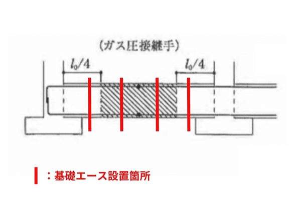 1本の基礎梁にどのくらい基礎エースを設置すればいいかの考え方としては、圧接位置に着目しよう!