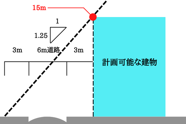 たとえば6m道路に面した住居系の敷地があるとしよう。