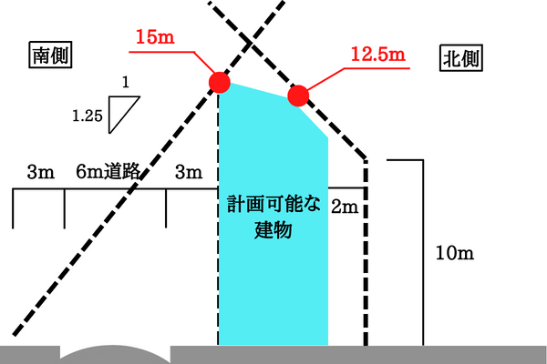 住居(低層) : 1.25×(建物と北側隣地境界線との空き幅)+5m