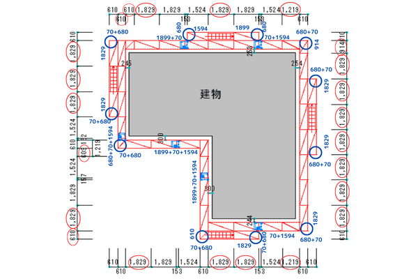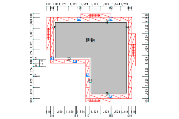 下記の足場モデルを参照に全てメッシュシートで拾っていきます。