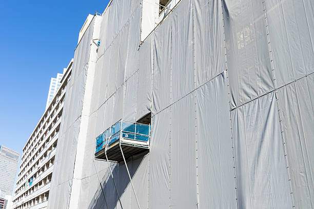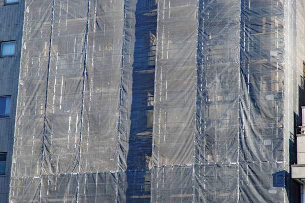 現場の印象を変える要因となるのが、足場のシート張りです。