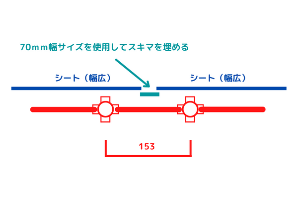 またスキマができるので、70mm幅サイズを使ってシートを張ります。