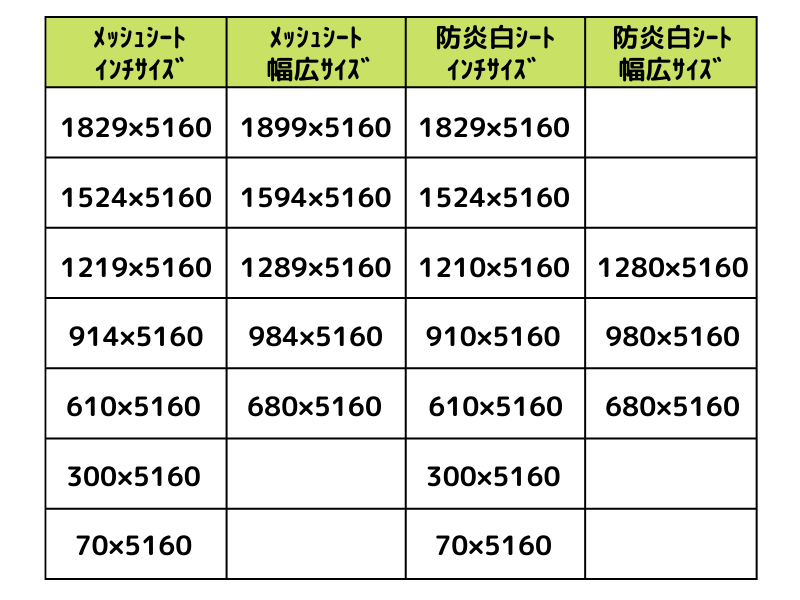 足場シートの寸法と種類とまとめました。