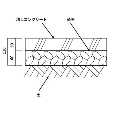 基礎工事前に墨出しを行うために打設する。打設レベルは基礎梁等の下端レベルとする。