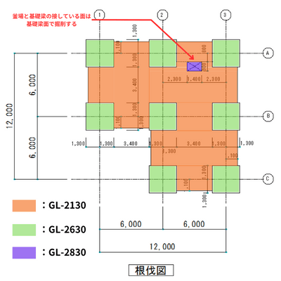 根伐図を間違えると次工程の基礎工事のレベルも合わなくなるので、何度も構造図を確認しながら作成していこう。