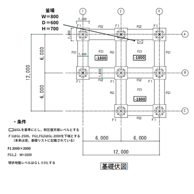 ・FG1、FG2(基礎梁) W=1600 (GL-2000mm下端)