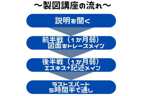 学科合格後の製図にも課金講座がありますが、お盆に行う課金講座は出ておくといいです。