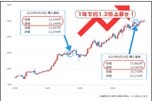 1年放置しただけで、1g 12000円が16000円に…
