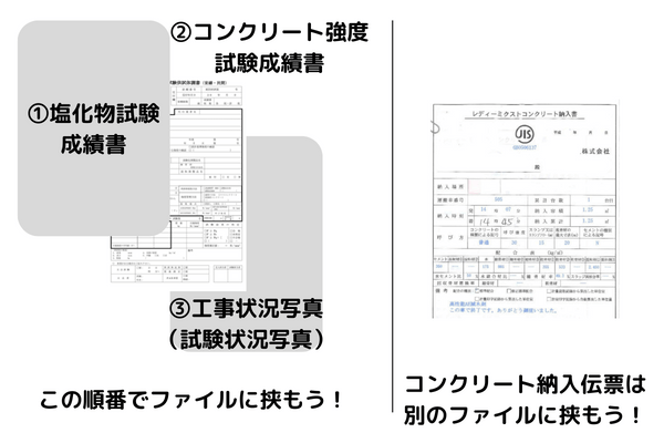 各コンクリート打設ごとに作成し、インデックスや付箋を付けファイルにまとめましょう!