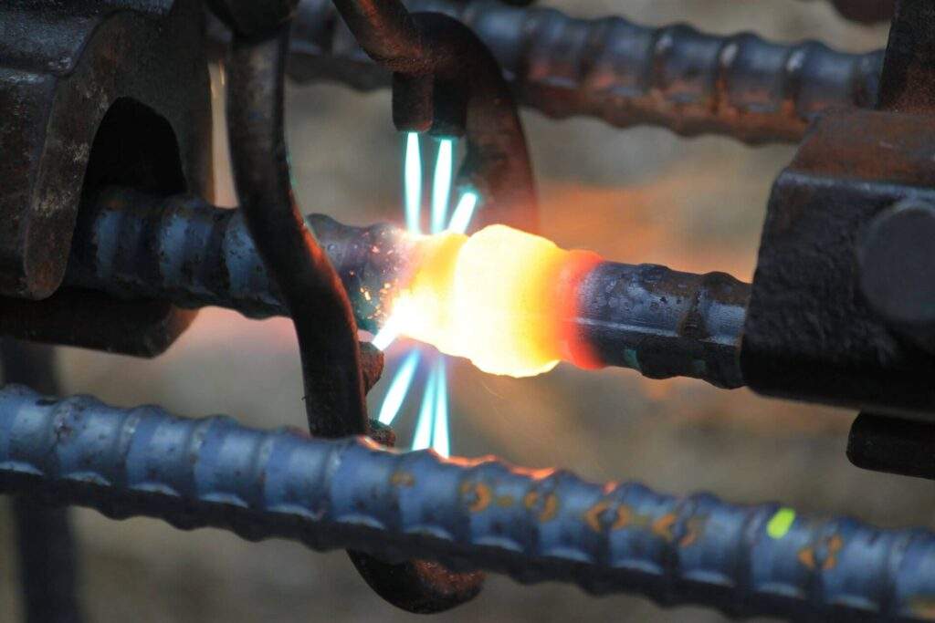 ・再圧接(抜き取った場所は鉄筋がない状態なので、鉄筋を追加して圧接する)