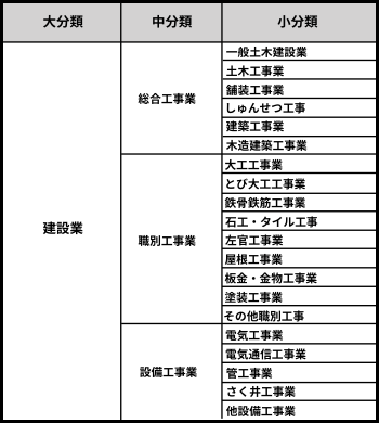 ちなみに建設業はこちら。(現場監督は総合工事業の建築工事業)