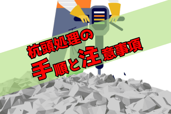 この杭頭を構造図に記載されているレベルまで斫り取る作業を杭頭処理という。