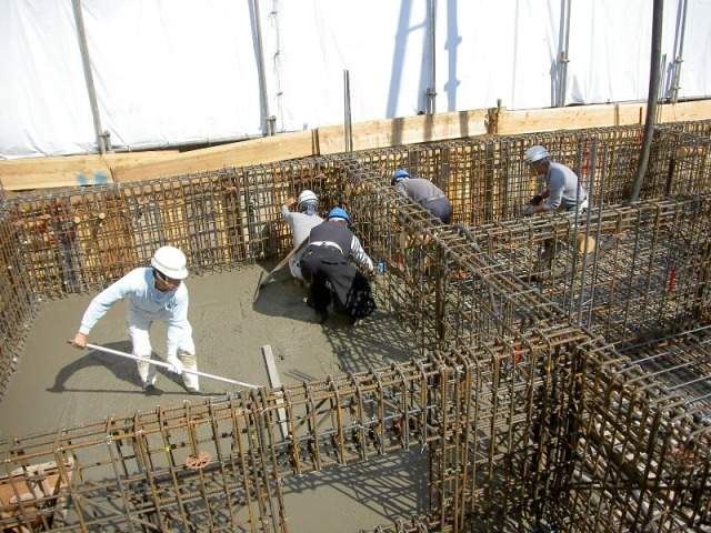 すべて配筋し終えたら、耐圧コンクリート打設をします。