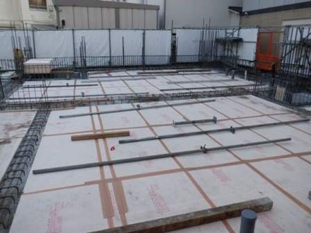 打設時のポイントとしては、地下ピットに水がたまらないように水勾配をつけましょう!