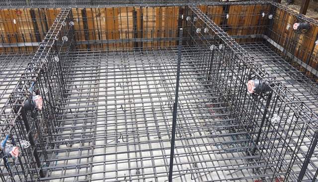それと同時並行で釜場も配筋して基礎配筋が完成です。
