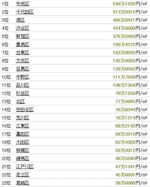土地単価ランキング